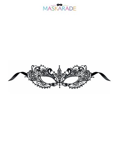 Le loup est composé d'une belle broderie noire et souple qui épouse le visage. Il se noue derrière la tête à l'aide de deux rubans satinés.