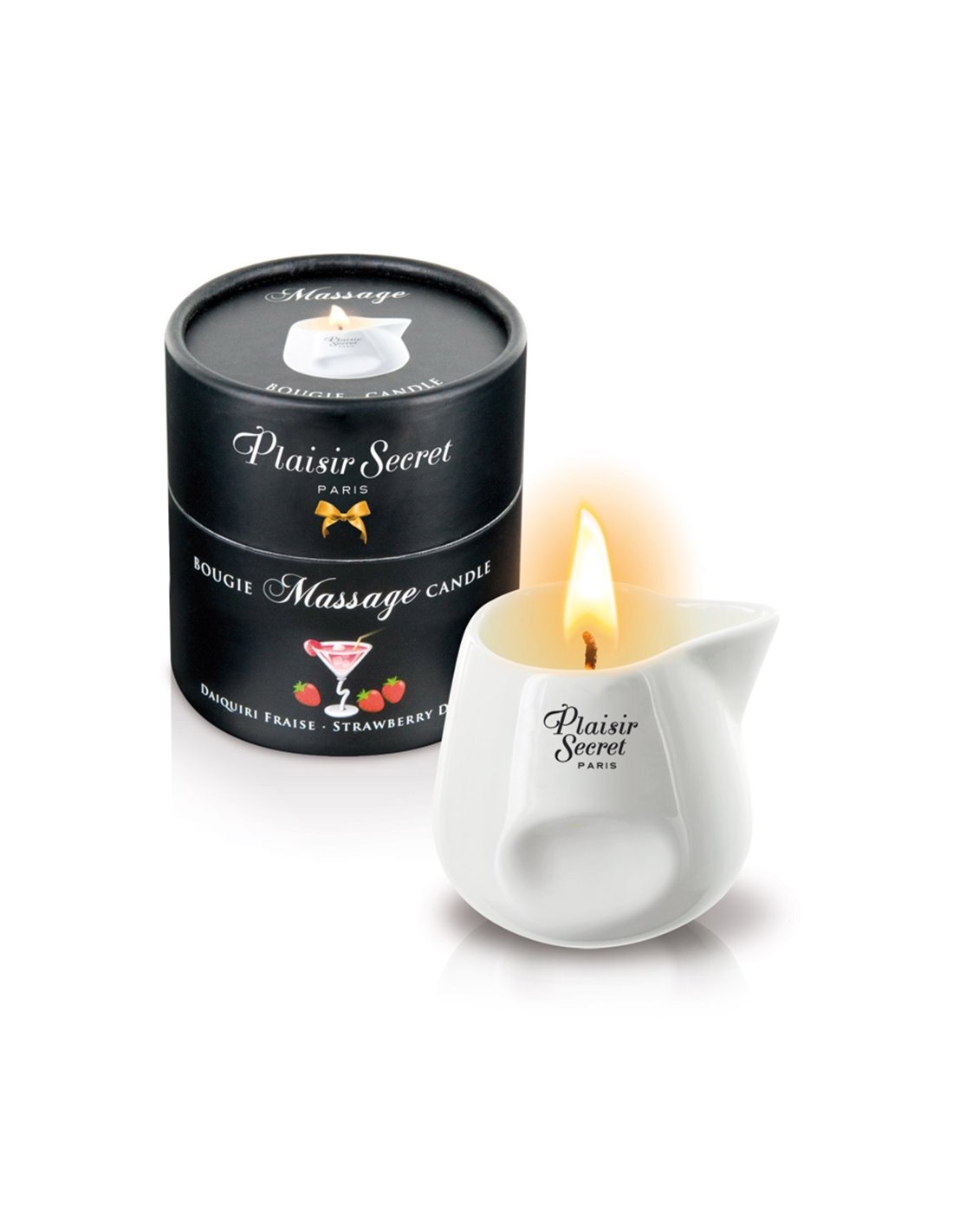 Bougie érotique se transformant en huile de massage sensuelle au goût du célèbre cocktail Daiquiri Fraise.